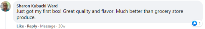 Occasionally a bad item might slip by us, or we might miss an item when packing your box. If you receive any produce that you are not happy with, or you are missing an item, just let us know, and we'll make it right in your next delivery.